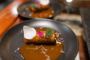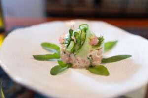 En collaboration avec de nombreux producteurs de la Mauricie, Isabelle imagine des menus audacieux mettant en lumière des ingrédients parfois méconnus : champignons et autres comestibles forestiers, espèces marines du Québec certifiées Fourchette Bleue ou encore des épices boréales. Elle va même jusqu’à mettre en valeur certaines mauvaises herbes dans ses plats! Très impliquée dans sa communauté, elle partage son savoir lors d’événements spéciaux, tout en nourrissant une curiosité constante pour les aliments locaux. De son côté, Francis brasse des bières artisanales qui s’accordent harmonieusement aux créations culinaires de la cheffe.